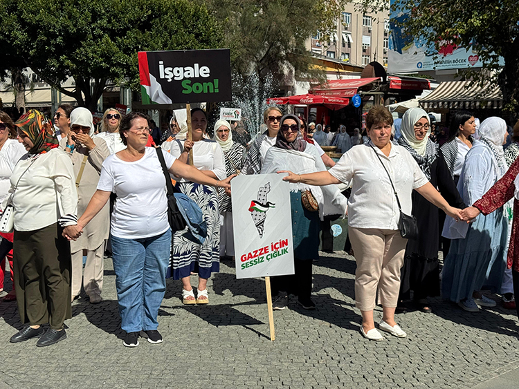 AK Parti Aydın İl Kadın Kolları tarafından İsrail'in Gazze'de sürdürdüğü soykırıma, Filistin'de yaşanan insanlık dramına dikkati çekmek ve Özgürlük Filosu Koalisyonu'na destek amacıyla Atatürk Kent Meydanı'nda "Gazze İçin Sessiz Çığlık" etkinliği düzenlendi.