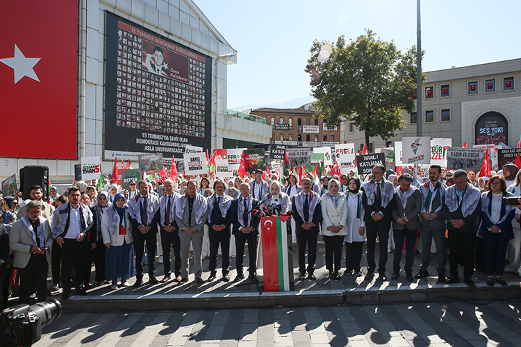 Meselenin insanlık meselesi olduğunu kaydeden Acar, "Slogan atmıyoruz, vicdanlarımızla haykırıyoruz. Çünkü bazı sessizlikler vardır ki arşı yere indirir ve bizim sessizliğimiz Gazze'nin en gür çığlığı olacaktır." şeklinde konuştu.