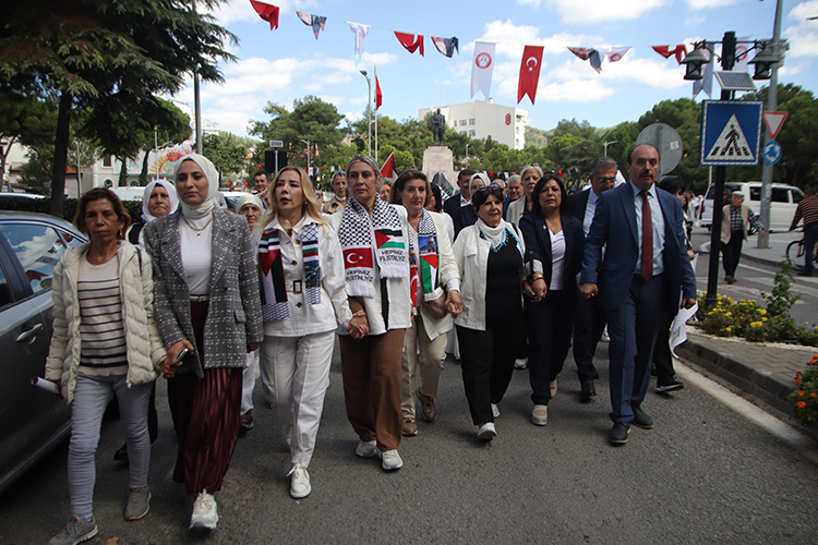 Özdemir, Gazze'de yaşananların insanlık vicdanını derinden yaraladığını belirterek, "Bugün kadınlar olarak Gazze'nin sessiz çığlığına ses olmak için el ele verdiğimizi tüm dünyaya göstermek adına meydanlardayız. Bu zulmü görmezden gelen herkese soruyorum, kalbiniz nerede?" ifadesini kullandı.