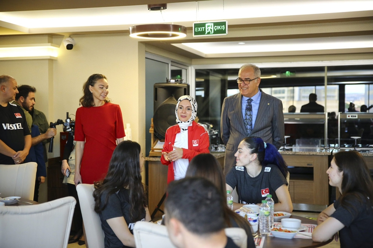 Aile ve Sosyal Hizmetler Bakanı Mahinur Özdemir Göktaş, Ankara'da kamp yapan 22-19 yaş altı kadın ve erkek milli voleybol takımlarıyla yemekte bir araya geldi.