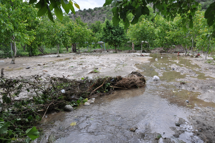 Bazı ev ve ahırları su bastı, tarım arazilerinde zarar oluştu.