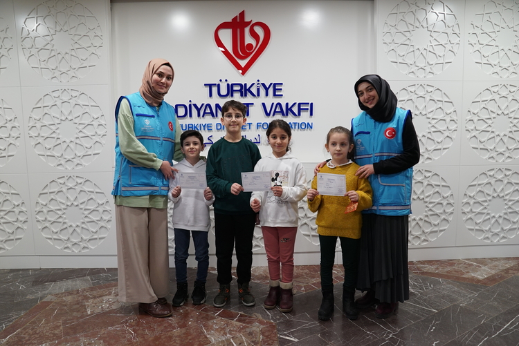 Türkiye Diyanet Vakfı Mütevelli Heyeti 2. Başkanı İhsan Açık, bağışta bulunan çocukları karşıladı, örnek davranışlarından dolayı çocuklara teşekkürlerini iletti.