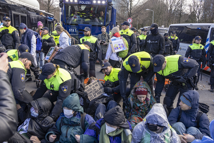 Lahey kentinin girişindeki A12 yolunun son kısmını 35 kez kapatan Extinction Rebellion grubunun, 9 Eylül 2023'te yolu kapatarak yaptığı eylemde yaklaşık 2 bin kişi gözaltına alınmıştı.