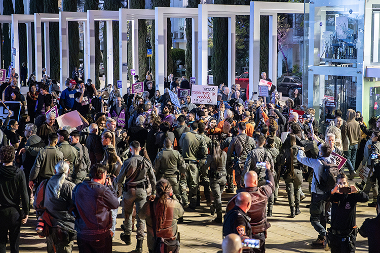 İsrail polisi, başkent Tel Aviv'de ABD-İsrail'in İran'a devam eden saldırılarını protesto etmek için toplanan kalabalığı güç kullanarak dağıttı.