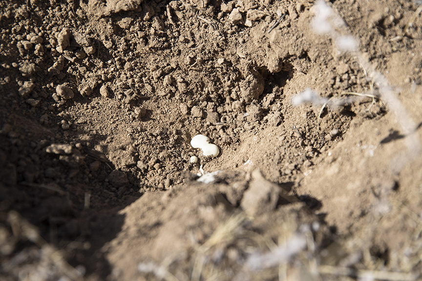 Günün belirli saatlerinde araziye çıkan köylüler, ilk olarak çapa yardımıyla kurumuş kengerlerin kök kısmında çukur kazıyor.