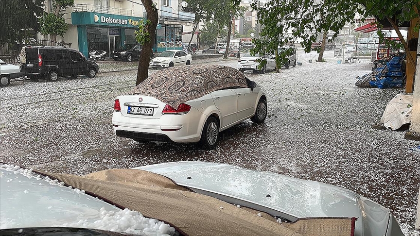 Dolu tanelerinin iri olması nedeniyle bazı araç sahipleri de araçlarının üzerini halıyla kapatarak korumaya çalıştı.