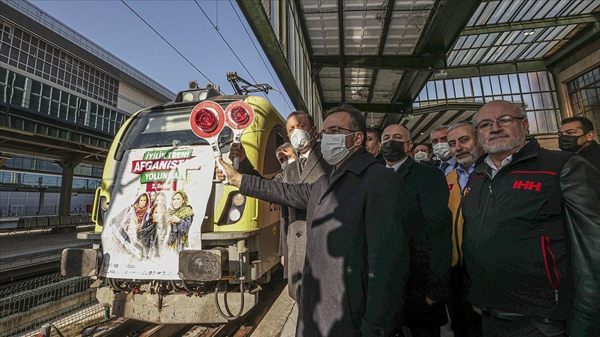 Pezük, "Afgan kardeşlerimize ulaştırılmak üzere temin edilen 921 tonluk yardım malzemelerimizi taşıyan toplam 45 konteyneri trenlerimizle Afganistan'a uğurlayacağız. Demiryolcular olarak bu ulvi gayenin gerçekleştirilmesinden mutluluk duyuyoruz." dedi.
