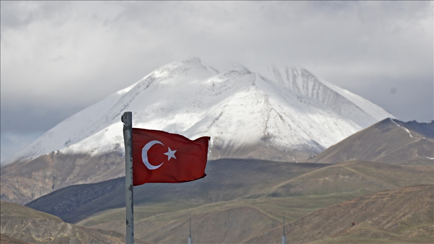Yağışın ardından Kösedağ'ın zirvesi, nisanda yeniden karla kaplandı.