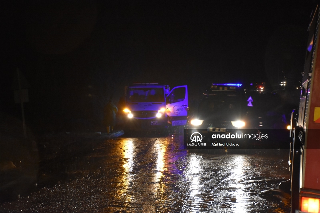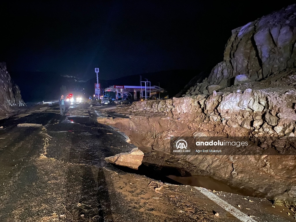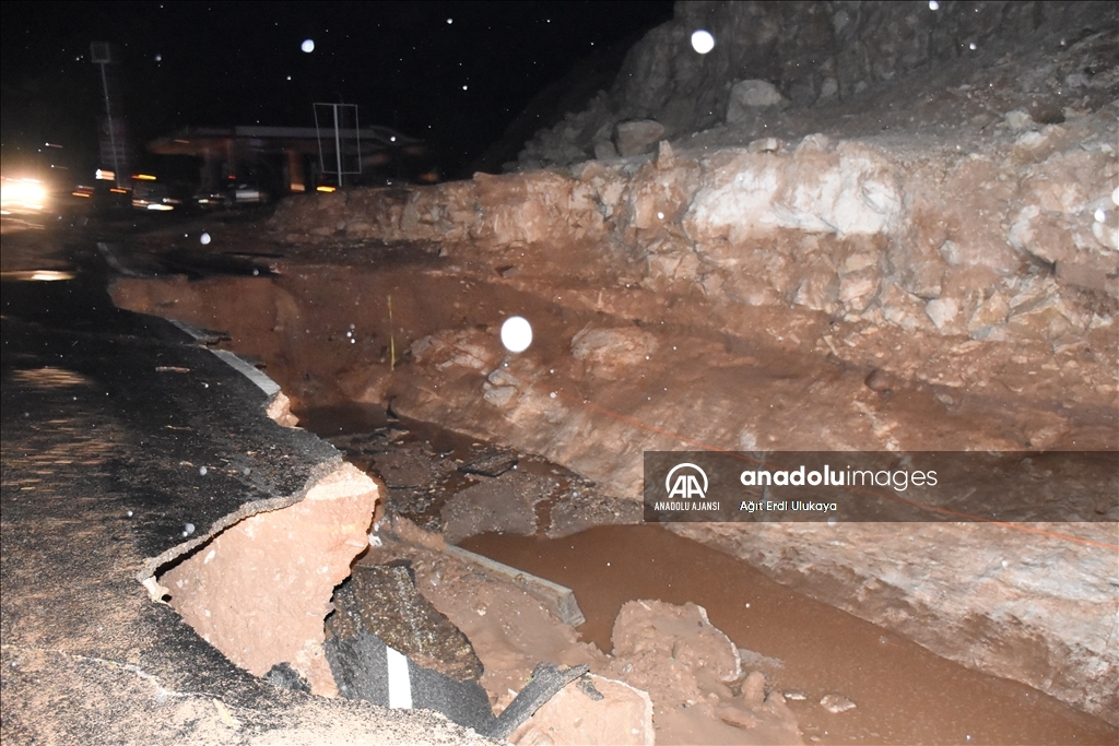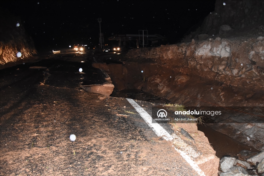Bazı belde ve köylerde sel meydana gelirken yollarda da çökme oldu.