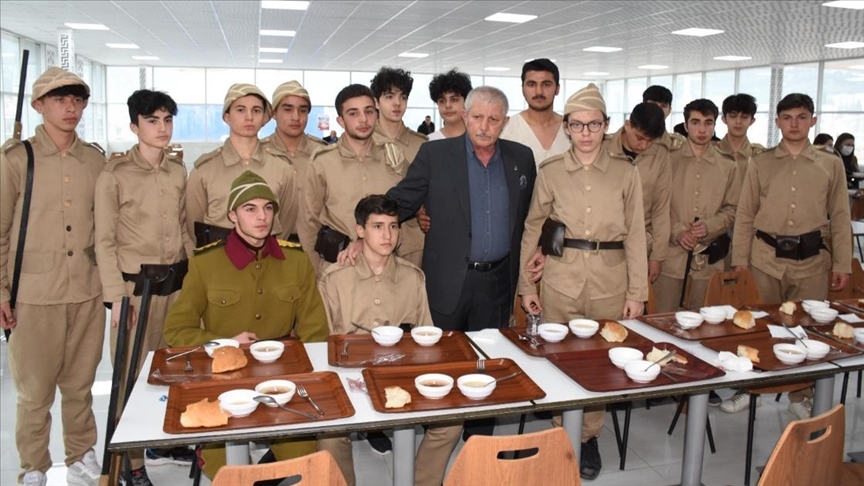 Belediye personelinden Sevilay Akdan ise, "Atalarımız bizi bu şekilde kurtarmış. Hoşaf ve ekmekle biz de öğle yemeğimizi geçiriyoruz. Çanakkale Zaferi'miz kutlu olsun. Çanakkale şehitlerimizin anısına, onları hatırladık. Hepsine Allah'tan rahmet diliyoruz" dedi.