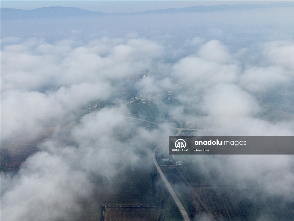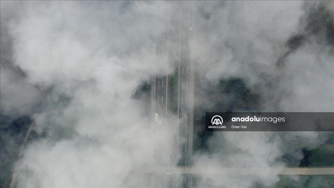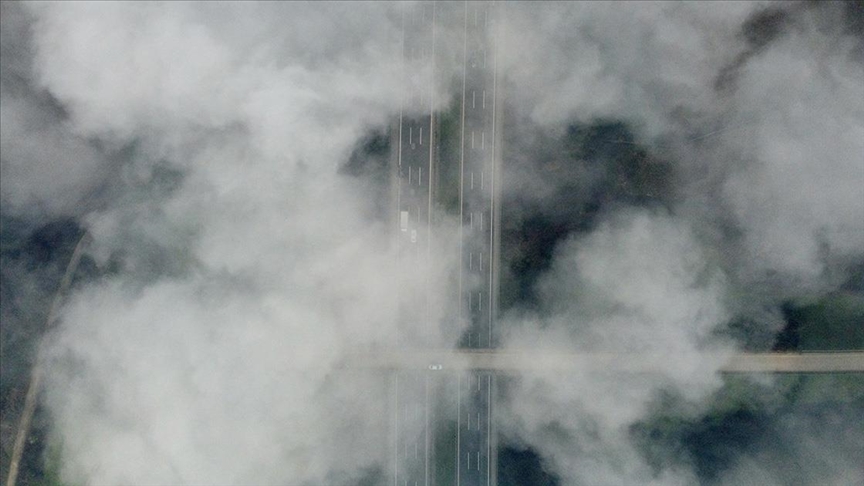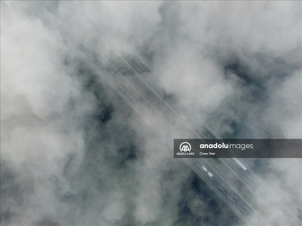 Bu arada bölgedeki ve kentin üzerini kaplayan sis bulutu havadan görüntülendi.