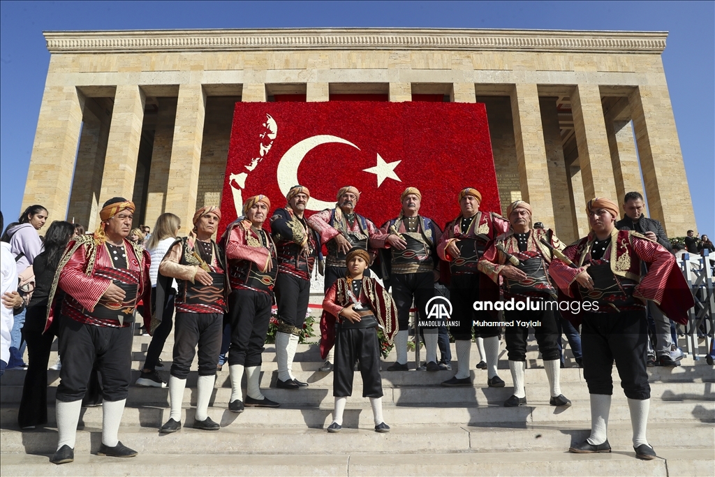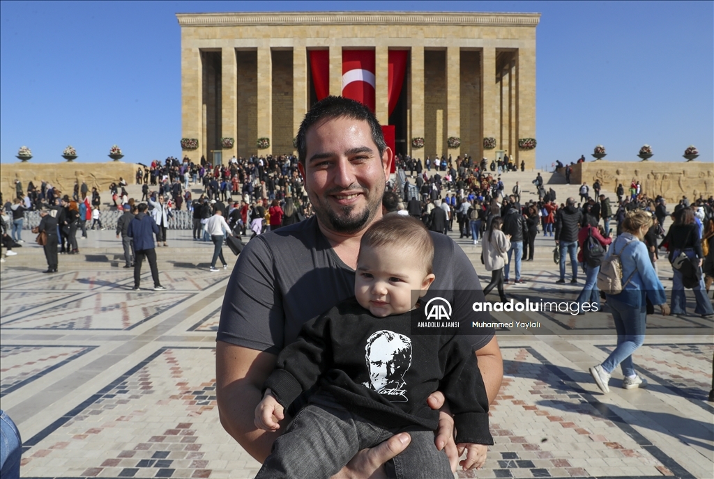Çeşitli şehirlerden gelen genç, yaşlı, çocuk binlerce kişi, Türk bayrakları, Atatürk posterleri ve çiçeklerle Atatürk'ün manevi huzurunda saygı duruşunda bulundu.