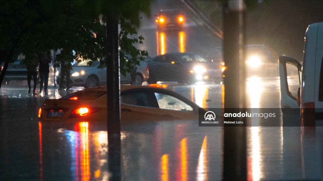 Ankara'nın bazı ilçelerinde etkili olan sağanak nedeniyle araçlarında mahsur kalanlar kepçe yardımıyla araçlarından çıkarılabildi.