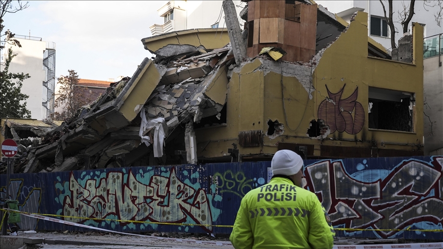 Tunus Caddesi'nde yer alan 5 katlı apartman, yıkım çalışması sırasında henüz belirlenemeyen bir nedenle çöktü.