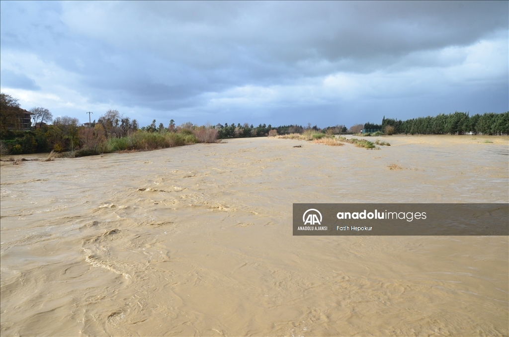 Bölgede 5 gündür etkili olan ve zaman zaman sağanağa dönüşen yağışlar dolayısıyla debisi yükselen Köprüçay Irmağı taştı. Belkıs Mahallesi'nde ırmağın çevresinde bulunan birçok iş yeri ve narenciye bahçeleri suyla doldu.