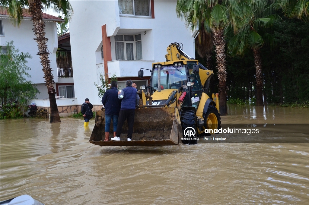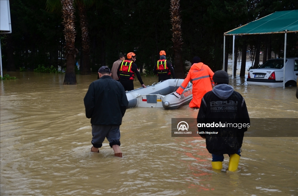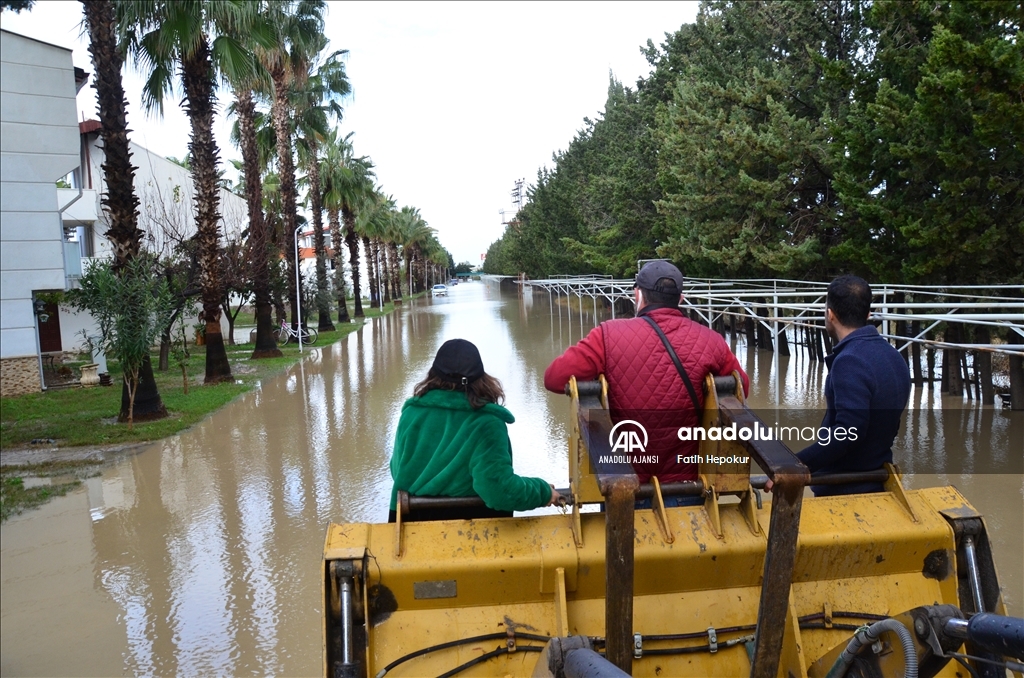 Antalya'nın Serik ve Manavgat ilçelerinde, yağışların ardından Köprüçay ve Manavgat ırmakları ile Karpuzçay Deresi'nin taşması sonucu iş yerlerini, tatil sitelerini ve narenciye bahçelerini su bastı.