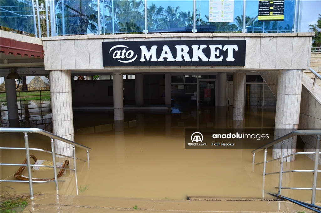 Manavgat'ta da Manavgat Irmağı'nın yükselmesi sonucu bölgedeki bazı iş yerlerini su bastı. Karpuzçay Deresi'ndeki taşmasının ardından Kızılot Mahallesi'ndeki ATO Tatil Sitesi'ne su doldu.
