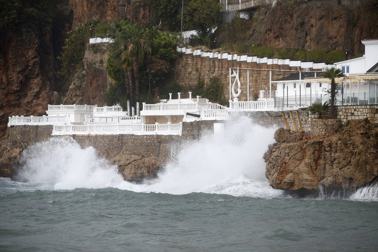 Rüzgar nedeniyle Kaleiçi Yat Limanı bölgesindeki falezlerde yüksekliği 4 metreyi bulan dalgalar oluştu. Limandaki balıkçılar, teknelerinin dalgalardan zarar görmemesi için çaba gösterdi.
