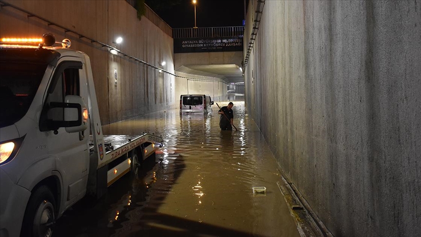 Kepez ilçesinde bulunan Gıyaseddin Keyhüsrev Kavşağı alt geçidi yağışla birlikte suyla doldu.