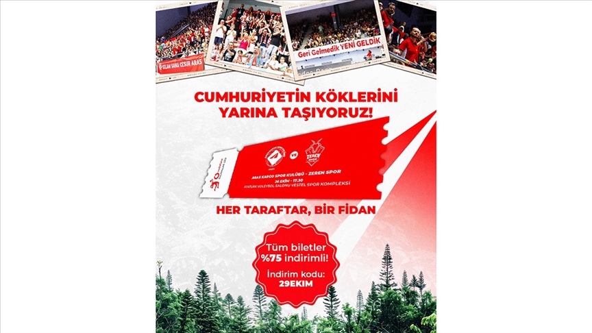 Şirketten yapılan açıklamaya göre, Aras Kargo Spor Kulübü'nün 26 Ekim'de kendi sahasında oynadığı maçı izlemeye gelen her taraftar için fidan bağışında bulunuldu. Bağışlanan bu fidanlar ile Aras Kargo Cumhuriyet Ormanı projesi hayata geçirilecek.