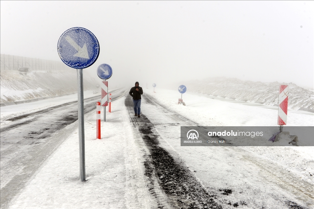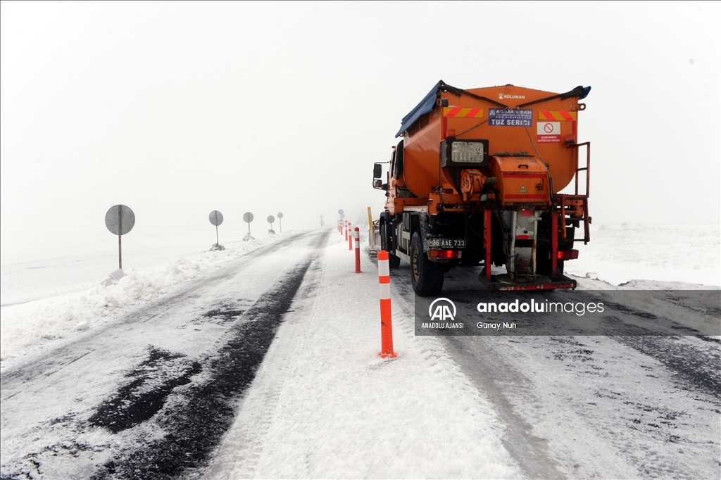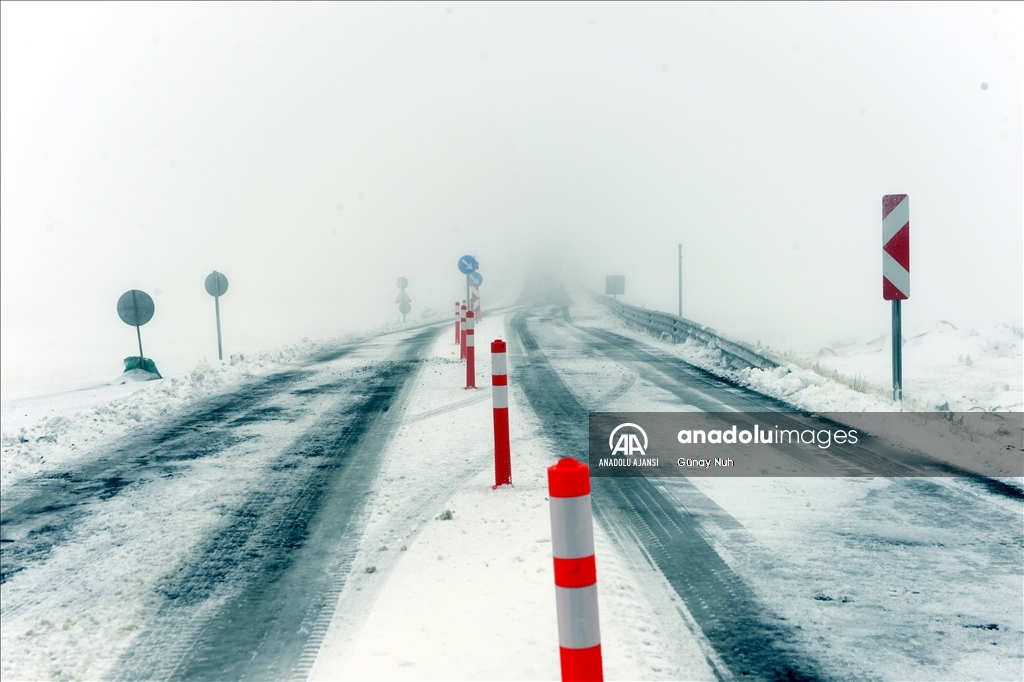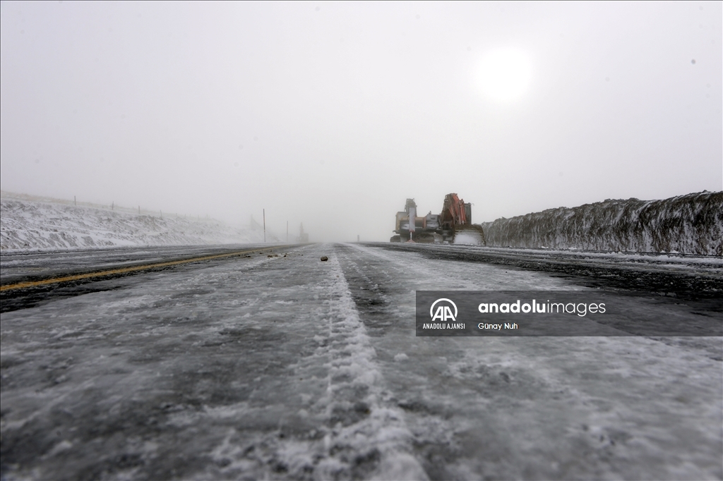 Sisin de etkili olduğu yolda, Karayolları ekiplerince karla mücadele çalışması başlatıldı.