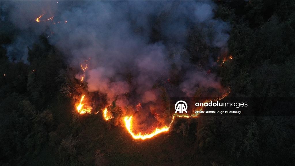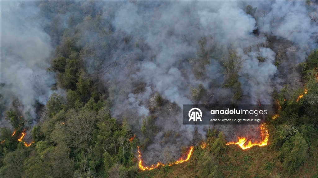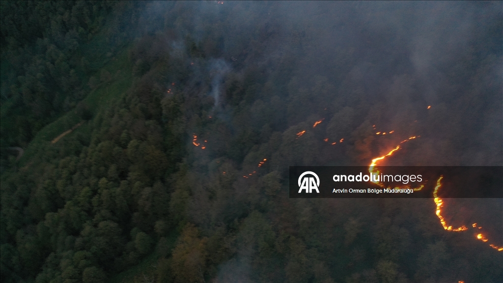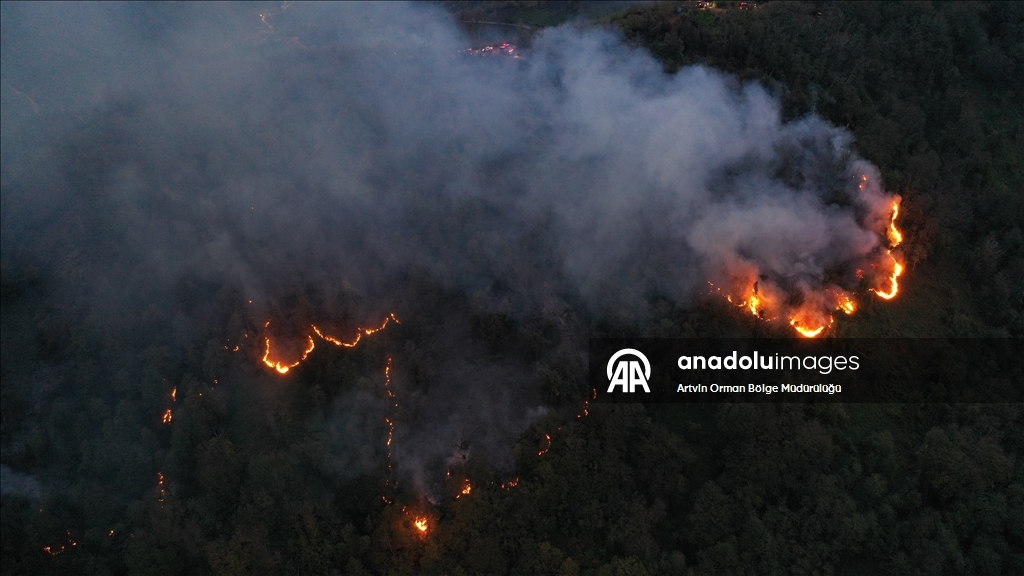 Ergün, Artvin Orman Bölge Müdürlüğü, Rize Orman İşletme Müdürlüğü, Hopa ve Arhavi belediyeleri, Artvin AFAD, Hopa Arama Kurtarma, jandarma, 112 Acil Servis, Kızılay ve İl Özel İdaresi ekiplerinin sahada olduğunu vurgulayarak, "Bütün ilgili kurumların ekipleriyle şu anda alandayız. 135 personel ve 32 araç şu anda yangını söndürmek için çalışıyor." dedi.
