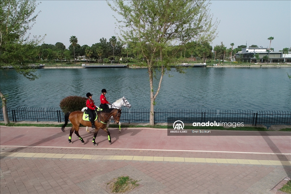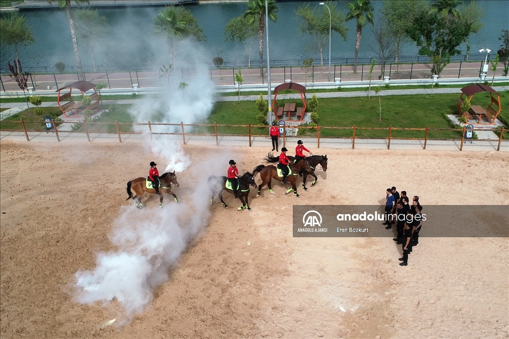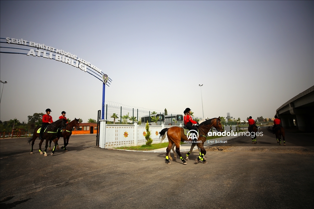 Adana Emniyet Müdürlüğü bünyesindeki Atlı Polis Grup Amirliğinde görevli polisler, gerçekleştirilen çeşitli tatbikatlarla atlarını toplumsal olaylara müdahalede her an göreve hazır bekletiyor.