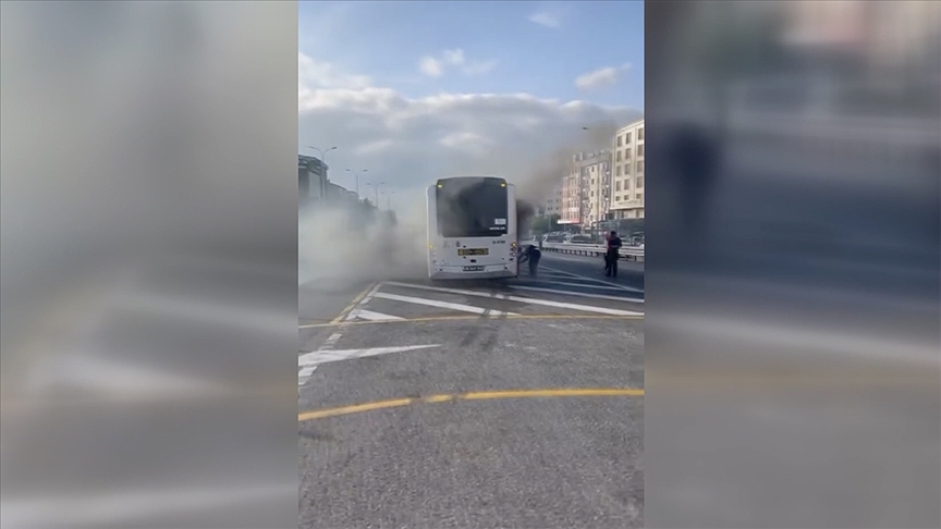 Yolcular araçtan tahliye edilirken, yangın İBB ekiplerinin müdahalesiyle söndürüldü.