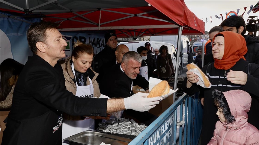 Başkan Bahadır, daha sonra ekiplerle birlikte hazırladığı balık ekmeği vatandaşlara ikram etti.
