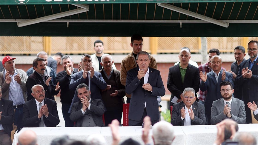 Mehmetçiğin nefesinin teröristlerin ensesinde olduğunu belirten Akar, "Bazı içeriden ve dışarıdan hainler, nifak tohumları atarak 'Terör elebaşını tahliye edeceğiz', 'Bunları affedeceğiz' gibi birtakım ifadeler kullanıyor. Bunlara asla müsaade etmeyeceğiz." diyen Akar, Türkiye'nin önemli bir seçime yaklaştığını ifade etti. Akar, şunları söyledi: