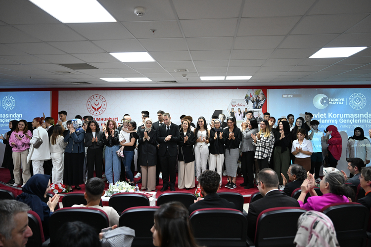 "2023 yılında korumamız altındaki çocuklarımızdan 319'u üniversiteye yerleşti. Çocuklarımızın okul başarısıyla birlikte sanat ve spor alanındaki ilgilerini de teşvik ediyoruz. Bugün itibarıyla 20 milli, 1557 lisanslı ve 3 bin 960 lisanssız sporcu çocuğumuz var. 2 bin 670 çocuğumuz, çeşitli kültürel ve sanatsal faaliyetlerde bulunuyor. Meslek sahibi olduklarında da çocuklarımızın yanında olmaya özen gösteriyoruz. Gençlerimizi iş ve meslek danışmanlarımızla çalışma hayatına hazırlıyoruz. Bugün 1017 arkadaşımız, bu ülkenin pırıl pırıl 1017 evladı, kamudaki görevine başlıyor. Yolunuz açık, bahtınız açık olsun. Ayağınıza taş değmesin."