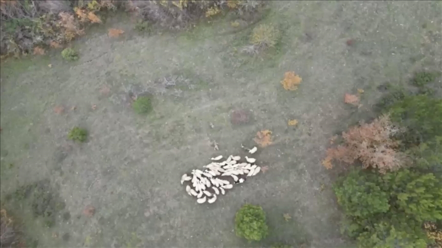 Bartın'da kurtların koyunlara saldırısı dronla görüntülendi