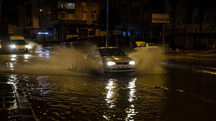 Kentte akşam başlayan kuvvetli yağışın ardından bazı cadde, bulvar ve sokaklardaki mazgalların tıkanmasıyla yollar yağmur suyuyla doldu.