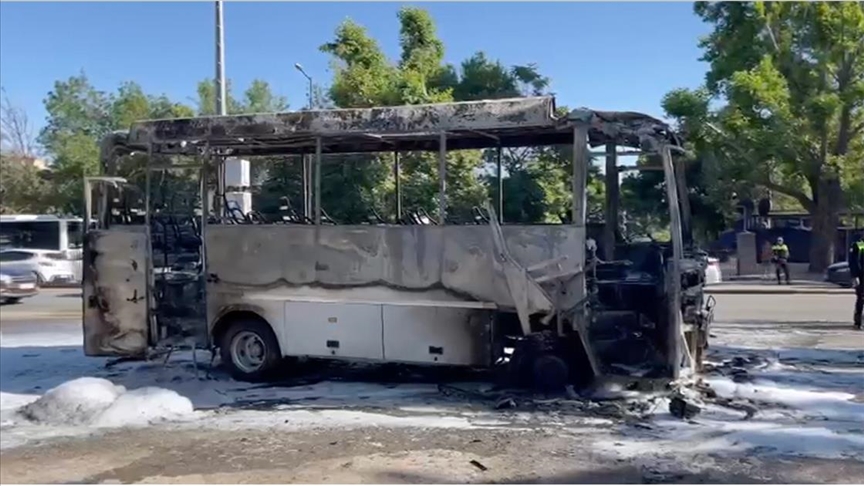 Olay yerine gelen itfaiye ekiplerinin müdahalesiyle söndürülen yangında, midibüs kullanılamaz hale geldi.