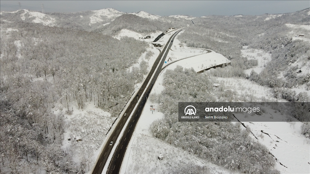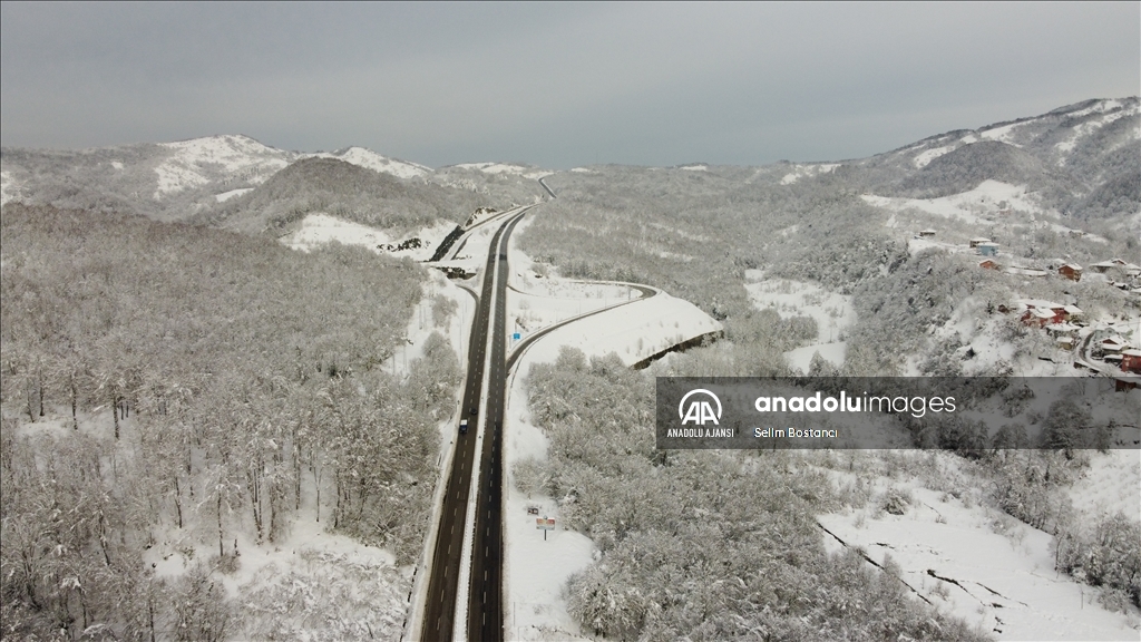 Araçlarıyla Karadeniz sahil yolunu kullanan vatandaşlar kestane, kayın, gürgen ve meşe ağaçlarından oluşan karlı ormanların arasında kıvrılıp uzayan kara yolu ağı boyunca güzel manzara eşliğinde seyahat etme imkanı buluyor.