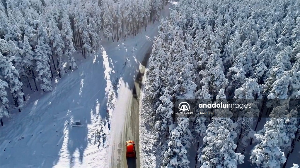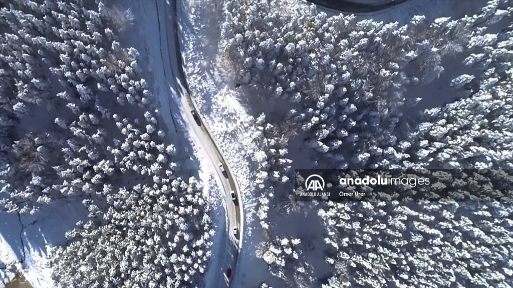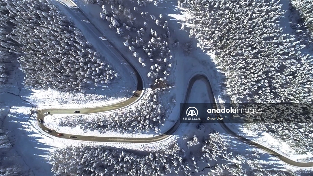 Sürücülere ve yolculara eşsiz seyir keyfi sunan kar manzarası, fotoğraf tutkunlarının da karelerine yansıyor.