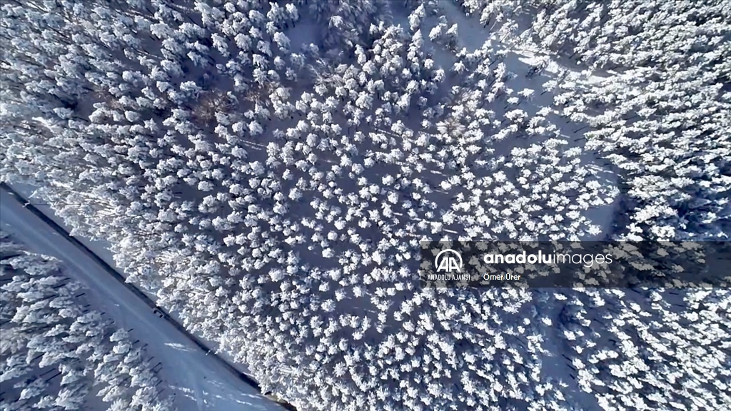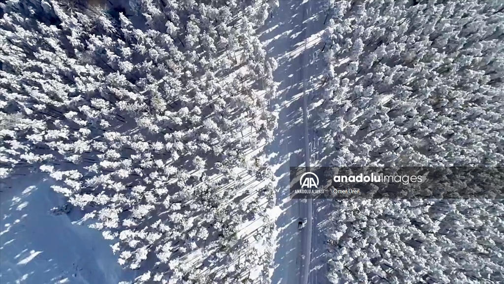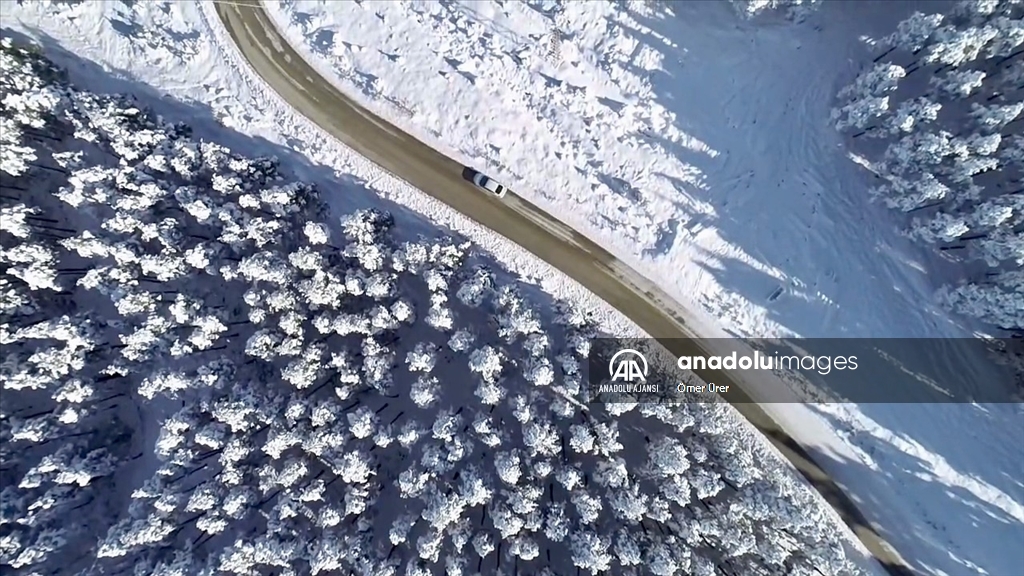 Beyaz örtüyle kaplanan yaylalarda güneşin de açmasıyla seyrine doyumsuz manzara ortaya çıktı. Bölgede oluşan güzel görüntü drone ile görüntülendi.