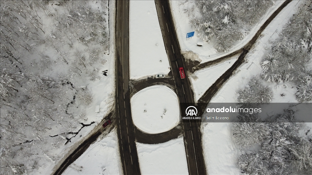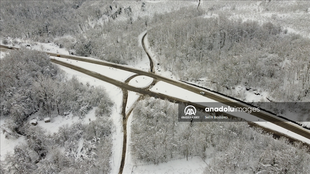 Batı Karadeniz'de kar manzarası havadan görüntülendi