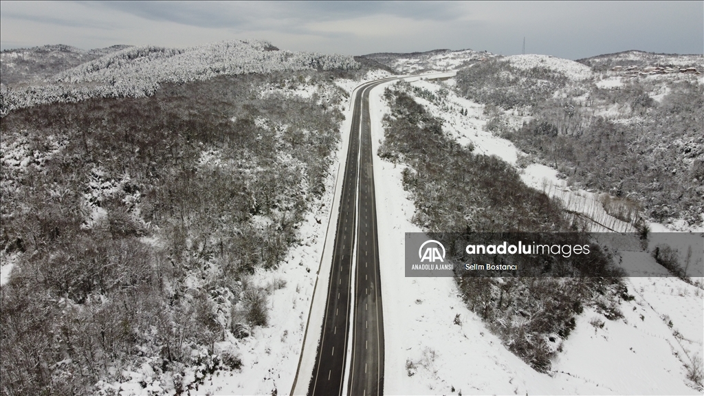 Karadeniz sahil yolunun Bartın-Kastamonu bağlantısı arasında yer alan Amasra-Kurucaşile yolu kar yağışıyla beyaza büründü.