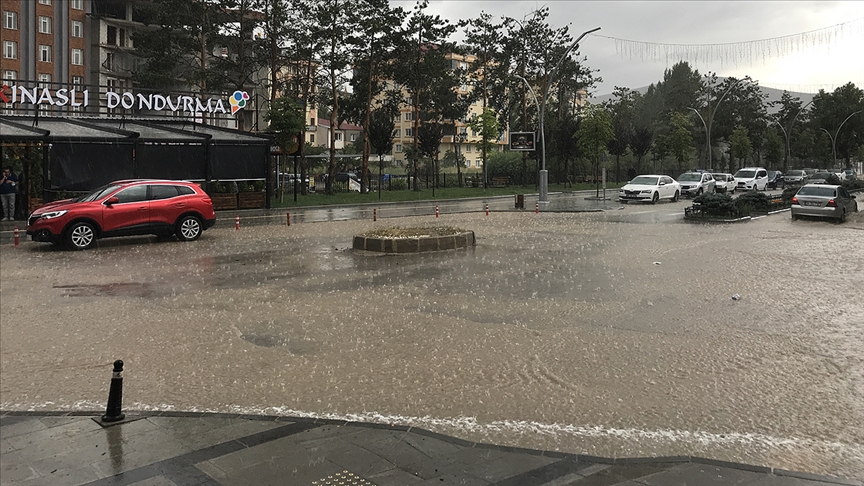 Bayburt'ta aniden bastıran sağanak nedeniyle cadde ve sokaklarda kısa sürede su birikintileri oluştu. Yağmura hazırlıksız yakalanan yayaların yanı sıra sürücüler de trafikte ilerlemekte güçlük yaşadı.
