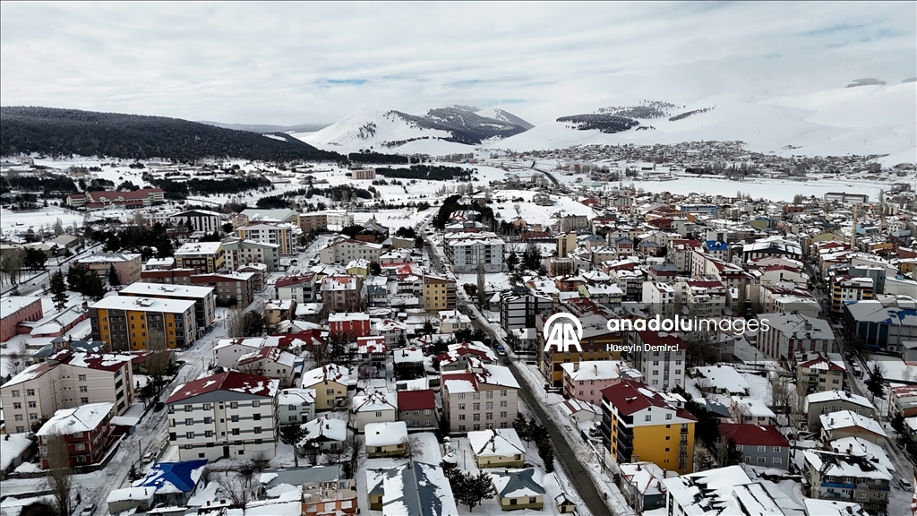 Sarıkamış ilçesinde de etkili olan kar her tarafı beyaza bürüdü.