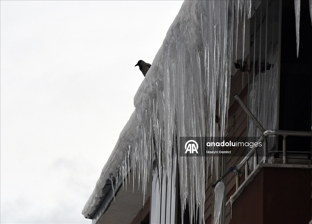 Soğuk havanın etkisiyle bina çatılarında buz sarkıtları oluştu.