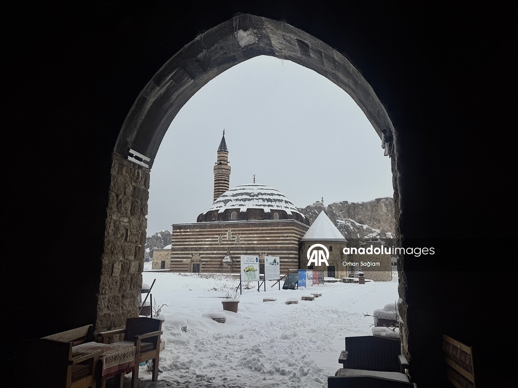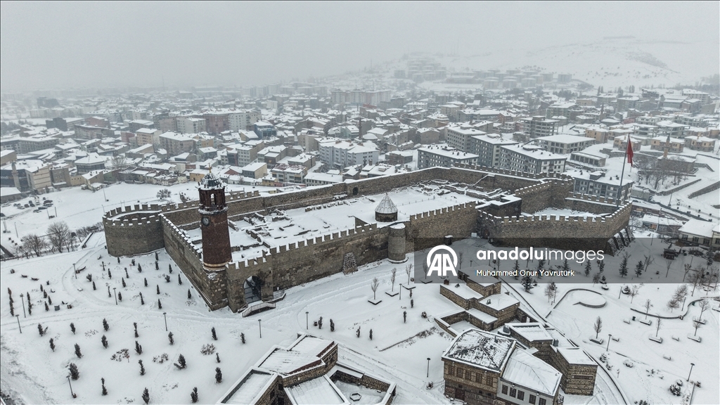 Kar nedeniyle kent merkezi yeniden beyaza büründü, tarihi yapılarda güzel görüntü oluştu.