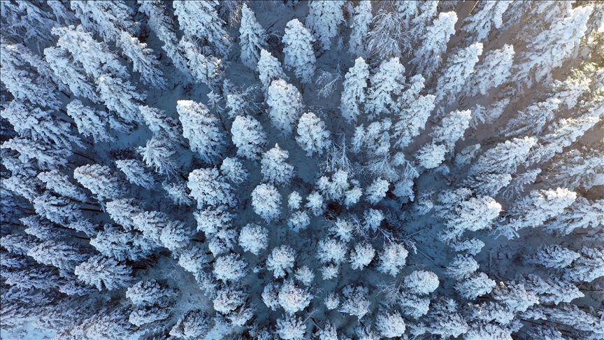 Küre Dağları'nın en yüksek noktalarından biri olan Yaralıgöz Geçidi'nde karla kaplanan orman, güzel manzara oluşturdu.