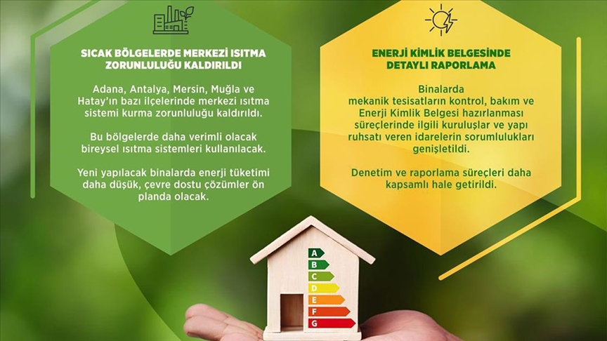 Buna göre, yeni yapılacak binalarda enerji tüketimi daha düşük tutulup, çevre dostu çözümler ön planda olacak.