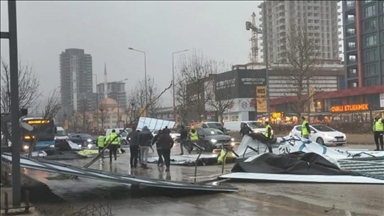 Kentin çeşitli noktalarında şiddetli rüzgar nedeniyle reklam panoları, trafik ışıkları, çöp konteynırları ve ağaçlar devrildi.