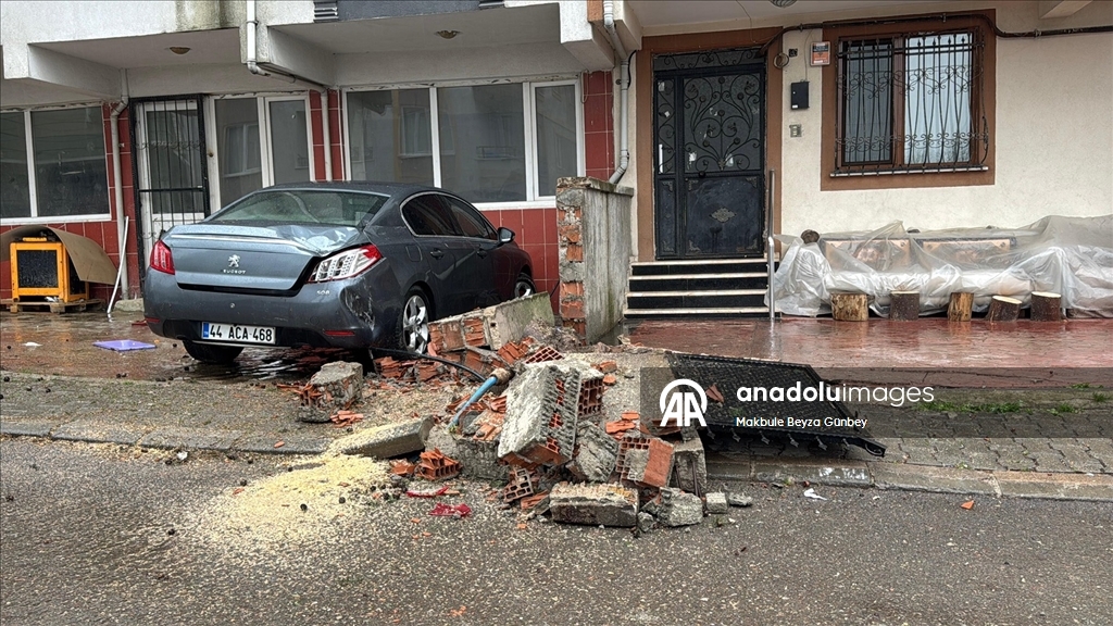 Çatılardan uçan kiremitlerin bazı araçlara hasar verdiği öğrenildi.