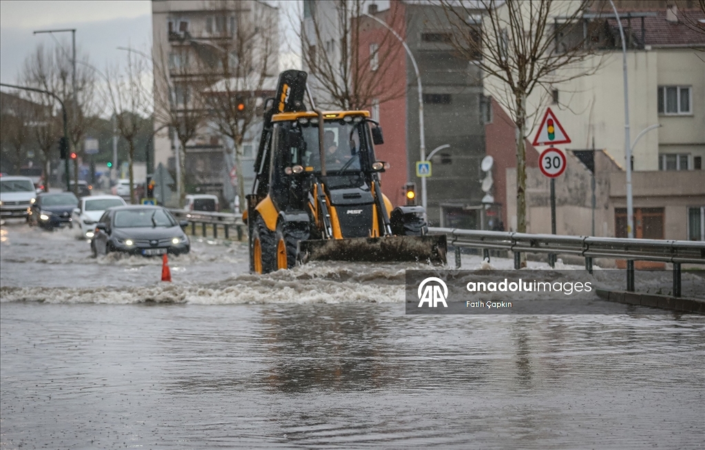 Sağanak nedeniyle bazı cadde ve sokaklarda su birikintileri oluştu.