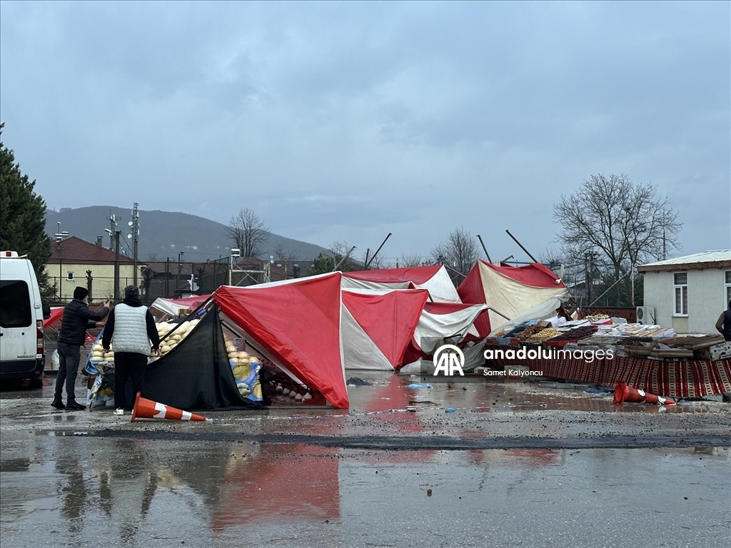 Şiddetli rüzgarın bazı dükkanların tabelalarına ve bölgedeki elektrik tellerine zarar verdiği bildirildi.