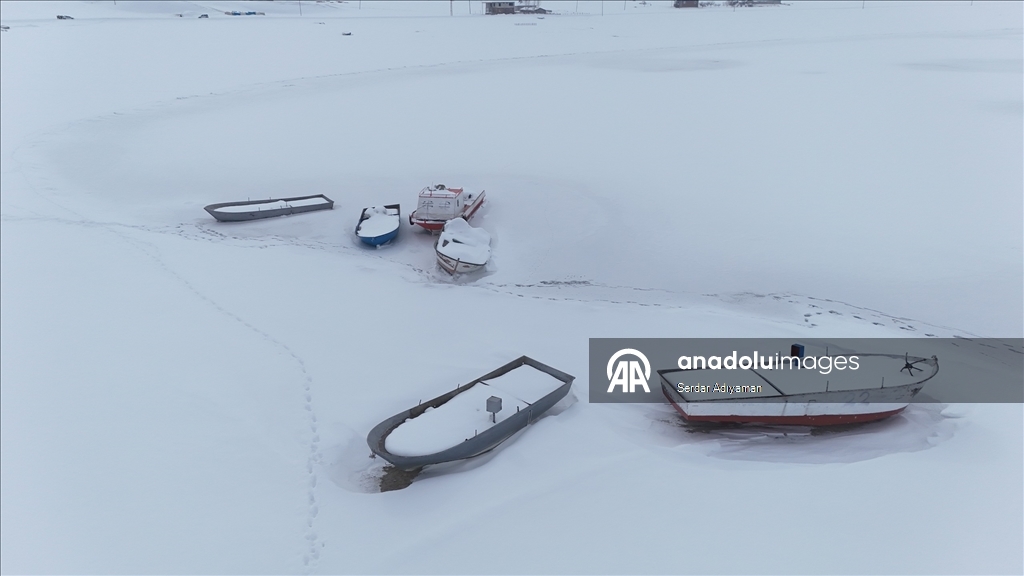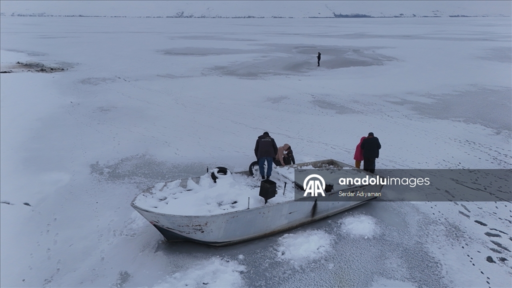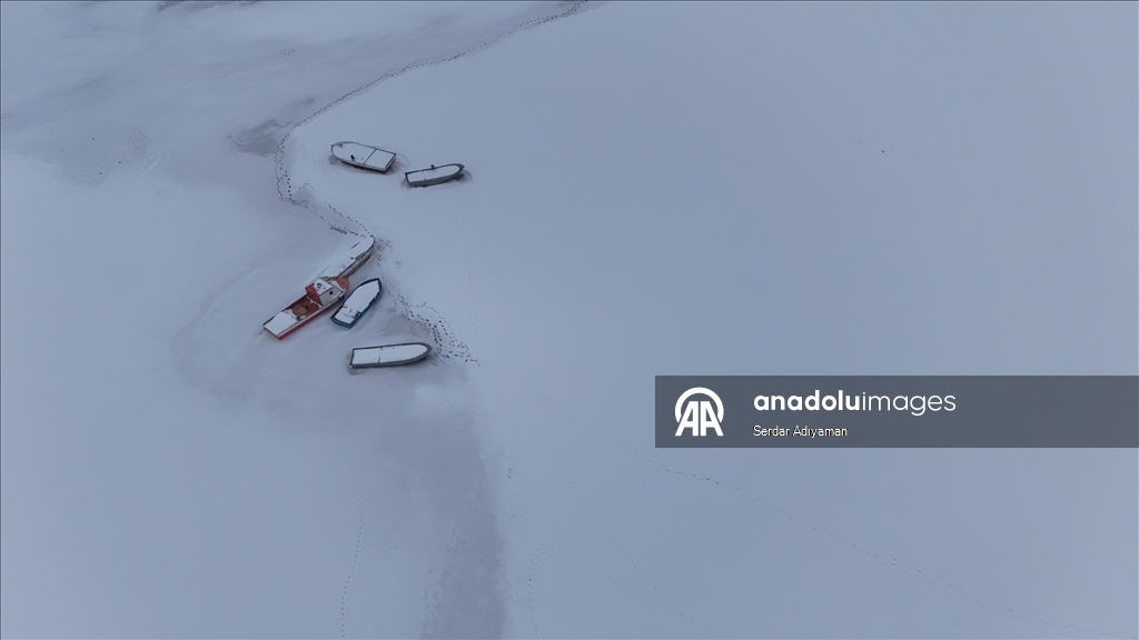 Fotoğraf sanatçısı Barış Kartpak, kış fotoğrafları çekmek için Gaziantep'ten geldiğini belirterek, "Nazik Gölü donmuş, birçok tekne buzların arasında kalmış. Güzel bir doğa manzarası var." dedi.
